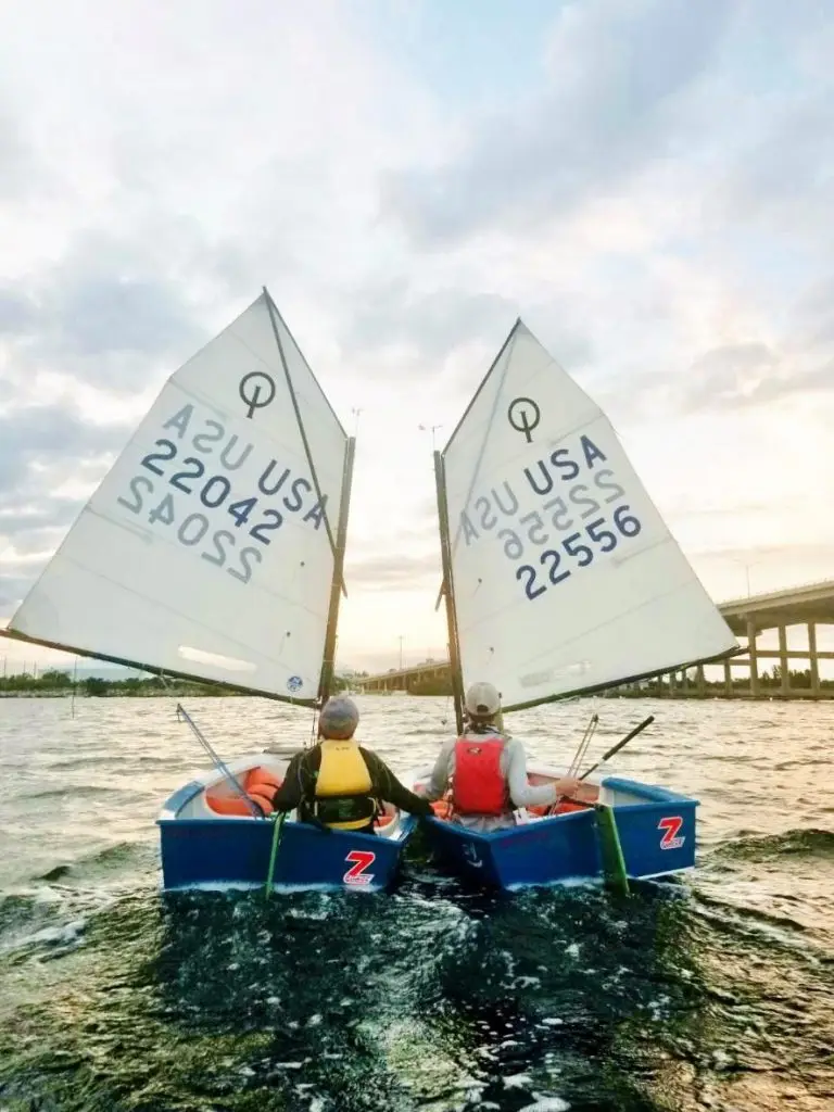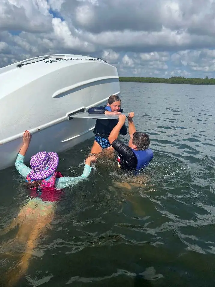 Cate and Sydney know that sailing a small dinghy on the broad waters of the Indian River Lagoon requires focus, perseverance, and resilience. The first drill sailors must master is recovery from a capsize. This requires teamwork and close coordination, leveraging weight and balance to upright the boat. There is no alternative to success if they want to go sailing.
